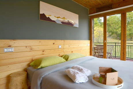 Bright, spacious room equipped with ecological natural wood furniture (beds, wardrobe and nightstand) and with a complete interior bathroom.